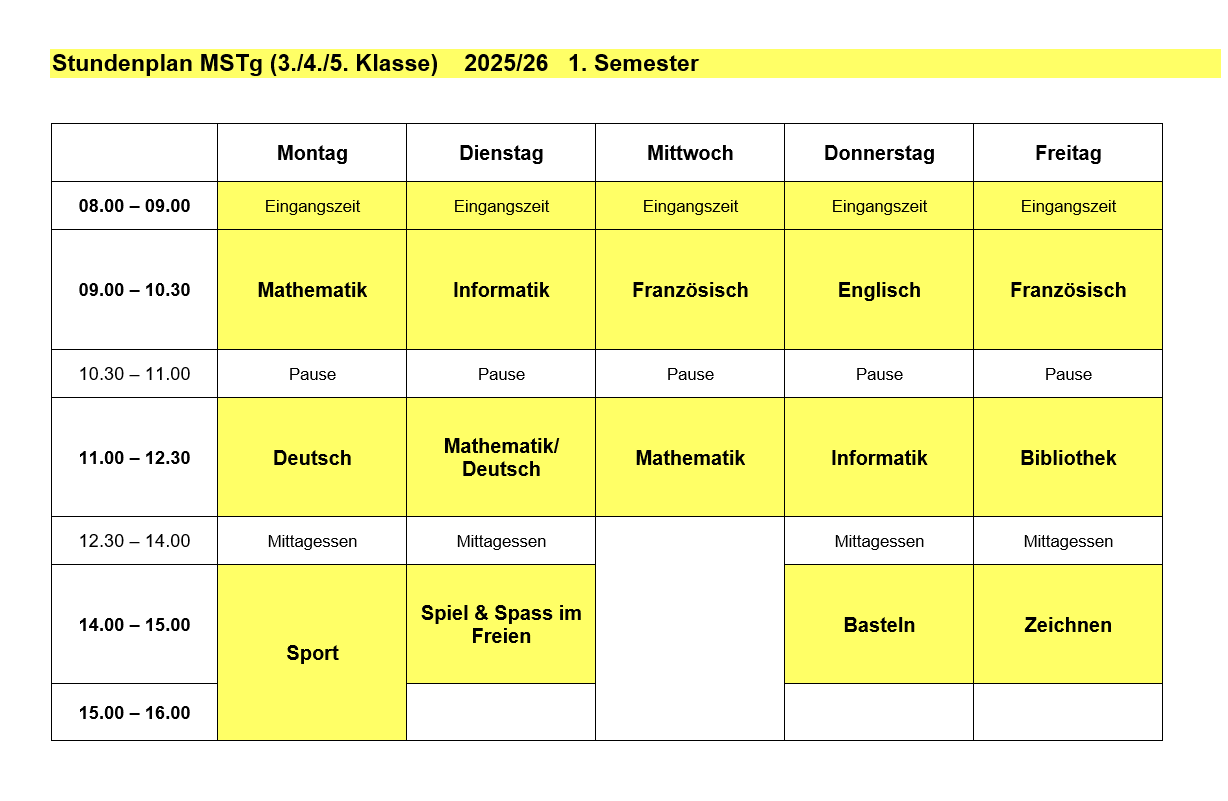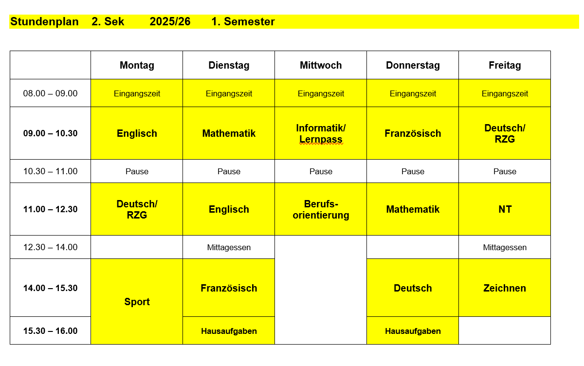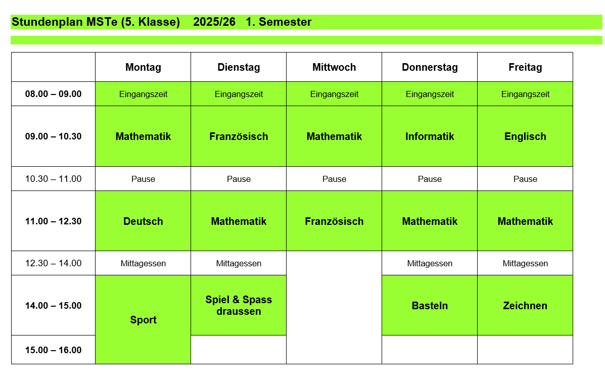 Aktuelle Stundenpläne fürs Schuljahr 2025/2026